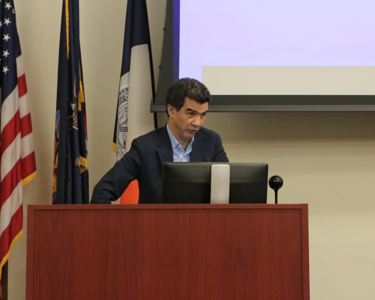 Participante durante el panel efectuado en la Universidad Baruch College.