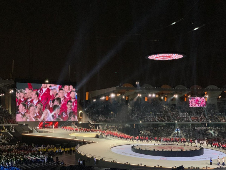 Participación de la primera dama, Cándida Montilla de Medina, junto a la delegación de atletas dominicanos presentes en la ceremonia de apertura de los Juegos Mundiales de Verano de Olimpiadas Especiales, 2019, en Abu Dabi.