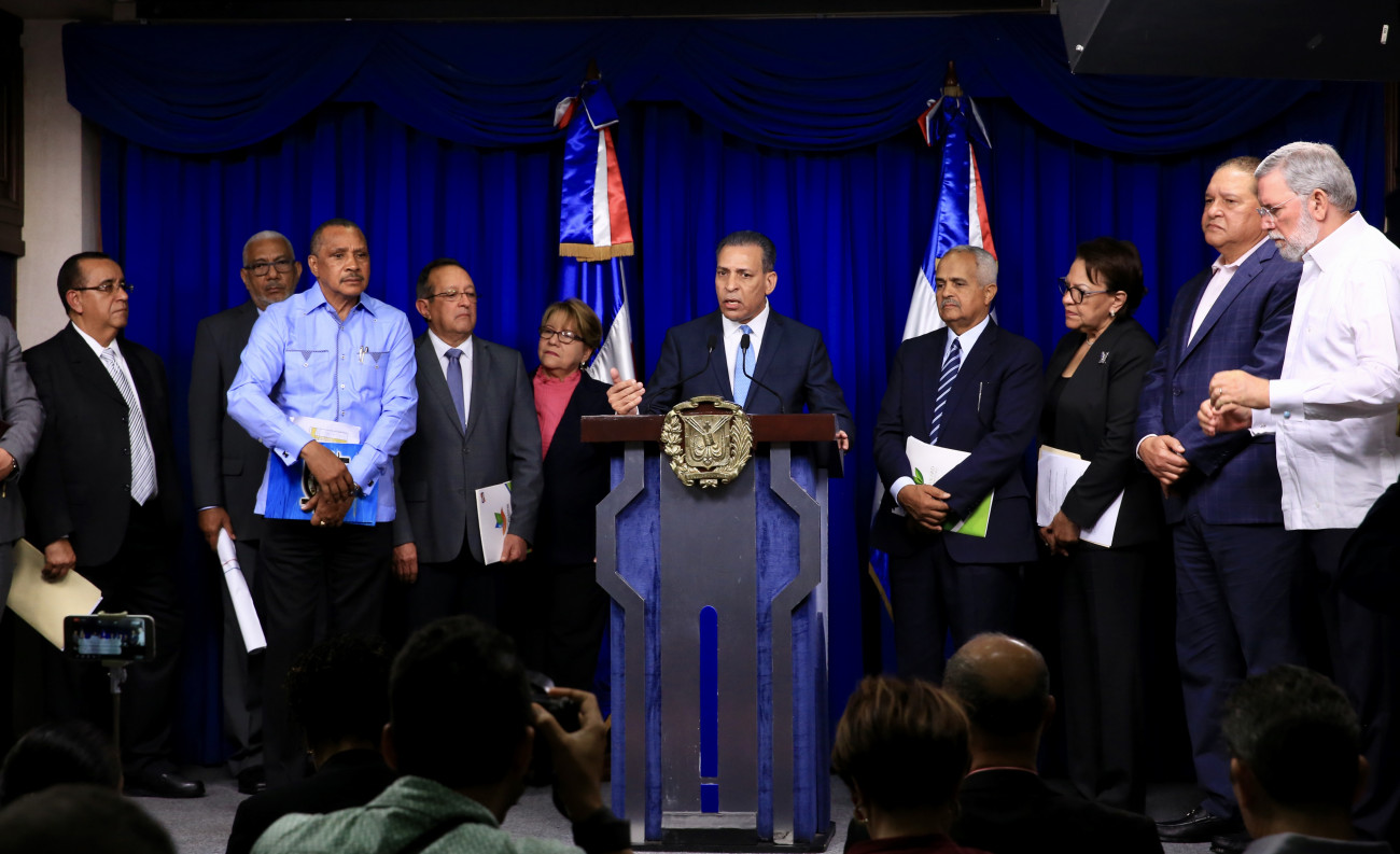 Rueda de prensa para ofrecer la información, encabezada por el ministro de Agricultura, Osmar Benítez, los directores de la ONAMET; el INDRHI; la CAASD, y otros funcionarios presentes en el Salón Orlando Martínez del Palacio Nacional. Foto: Romelio Montero/Presidencia República Dominicana Enlace noticia: presidencia.gob.do/noticias/presidente-danilo-medina-se-r... Enlace video: livestream.com/PresidenciaRD/RuedadePrensa14032019/videos...