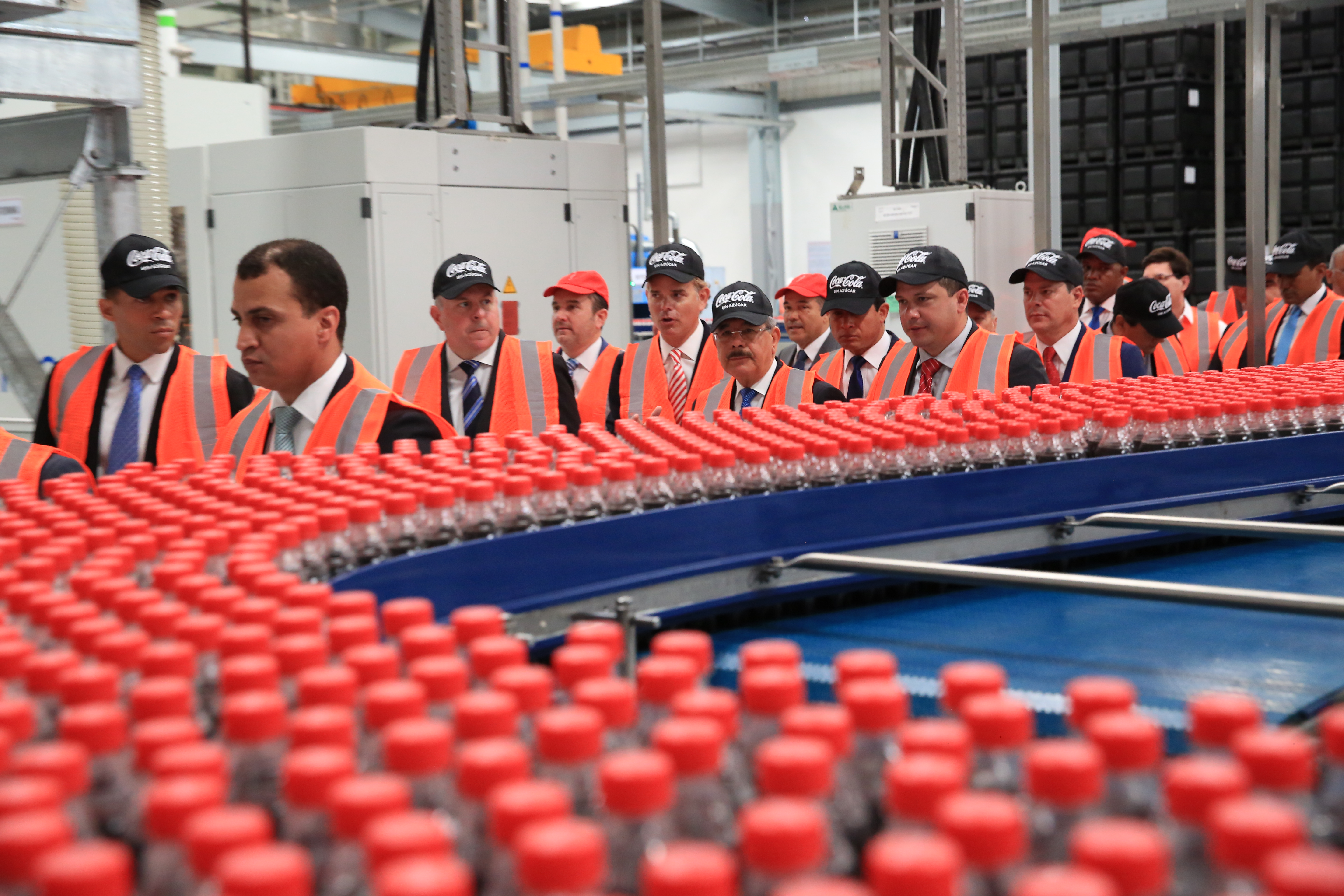 El presidente Danilo Medina junto a ejecutivos de la empresa, durante recorrido por las instalaciones de la nueva línea de producción de Bepensa Dominicana. Foto: Romelio Montero/Presidencia República Dominicana Enlace noticia: presidencia.gob.do/noticias/danilo-medina-asiste-puesta-e...
