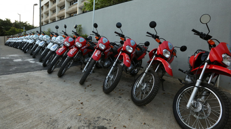 Así, desplegados en el parqueo de la sede, encontró una muestra de las 85 ambulancias, 90 motoambulancias, 400 unidades policiales de 4 ruedas y 1,000 motocicletas, además de 75 camiones de bomberos, los cuales forman parte de los recursos que, dotarán de efectividad al 9-1-1. Foto: Presidencia República Dominicana