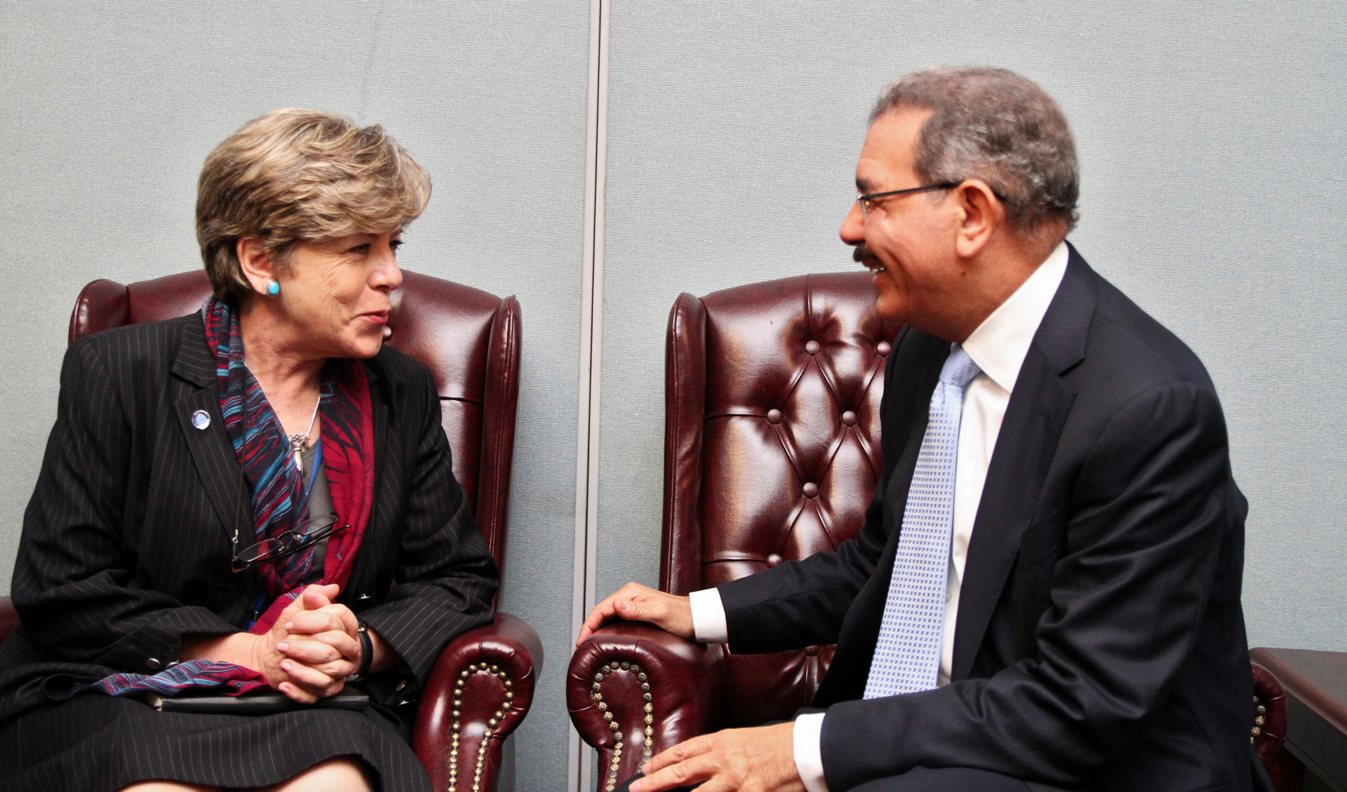 Señora Alicia Bárcena, secretaria ejecutiva de la CEPAL conversando con el presidente Medina, durante el encuentro en Nueva York, con motivo de la Sexagésimo Séptimo Período de Sesiones de la Asamblea General de la ONU.