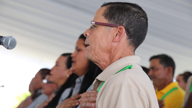 "Yo era ciego con ojos", expresó el empleado Leonardo Luciano, uno de los que aprendió a leer y escribir con Quisqueya Aprende Contigo y quien leyó una carta de motivación del presidente Danilo Medina a quienes se esfuerzan por aprender a leer y escribir.