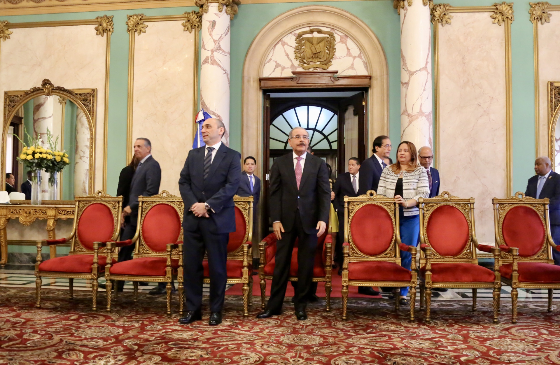 El presidente Danilo Medina durante ceremonia de imposición de la Orden del Mérito de Duarte, Sánchez y Mella, en el grado de oficial, a Lorenzo Jiménez de Luis, coordinador residente del Sistema de las Naciones Unidas, que tuvo lugar en el Salón de Embajadores del Palacio Nacional.