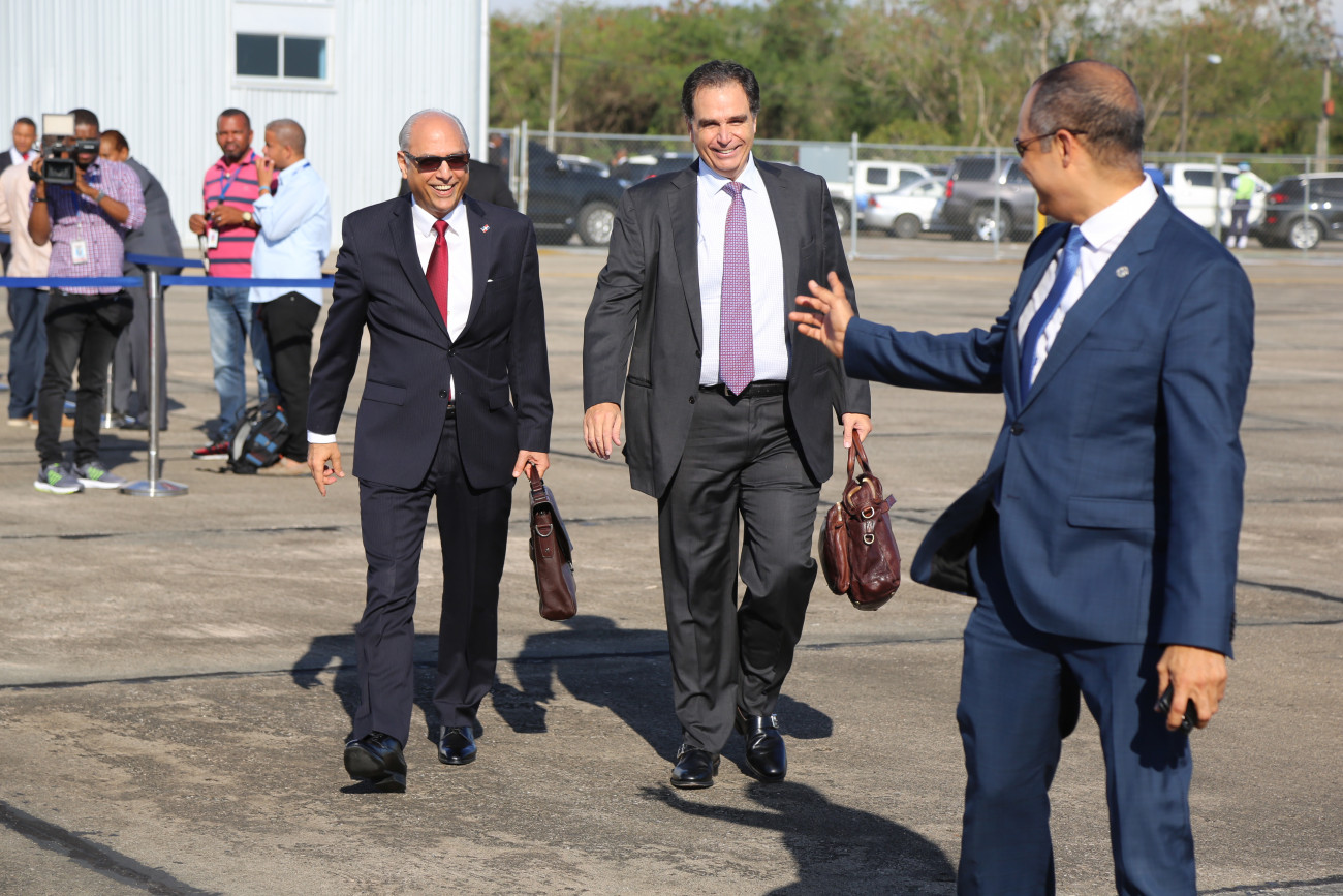 Consultor jurídico del Poder Ejecutivo, Flavio Darío Espinal y el empresario José Miguel González Cuadra, integrantes de la delegación que encabeza el jefe del Estado dominicano.
