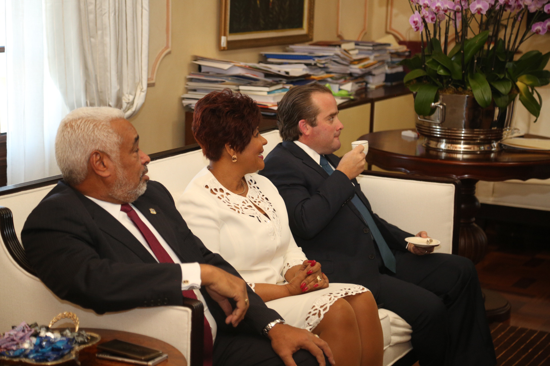 Radhamés Camacho, presidente de la Cámara de Diputados; diputada Josefa Castillo, y el senador Ignacio Paliza, presentes durante la sesión de trabajo, en el Salón Privado del Palacio Nacional.