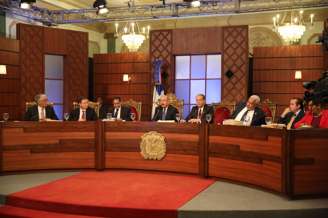 El Consejo Nacional de la Magistratura (CNM), encabezado por el presidente Danilo Medina, inició hoy las evaluaciones de los 78 candidatos postulados para ocupar las vacantes de la Suprema Corte de Justicia (SCJ). Salón Verde, del Palacio Nacional.