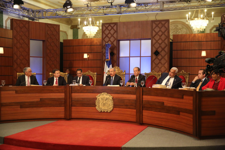 El Consejo Nacional de la Magistratura (CNM), encabezado por el presidente Danilo Medina, inició hoy las evaluaciones de los 78 candidatos postulados para ocupar las vacantes de la Suprema Corte de Justicia (SCJ). Salón Verde, del Palacio Nacional.