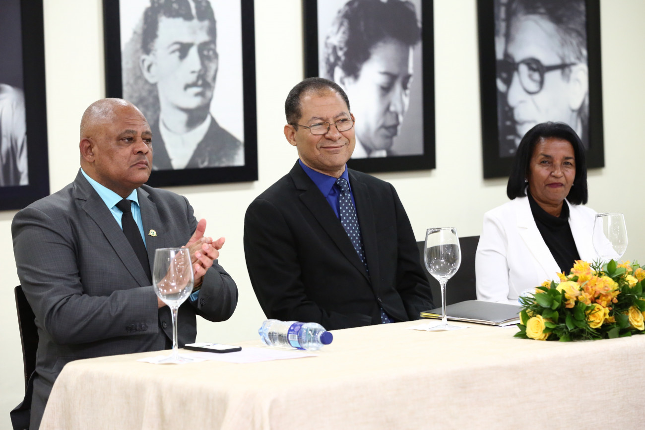 Jorge Méndez Pérez, administrador general de la Cooperativa de Herrera (CoopHerrera);, Luis Vergés, encargado del CAIFI, y Rosa Julia Martínez, en representación de la Universidad Católica Santo Domingo, ocuparon la mesa principal.