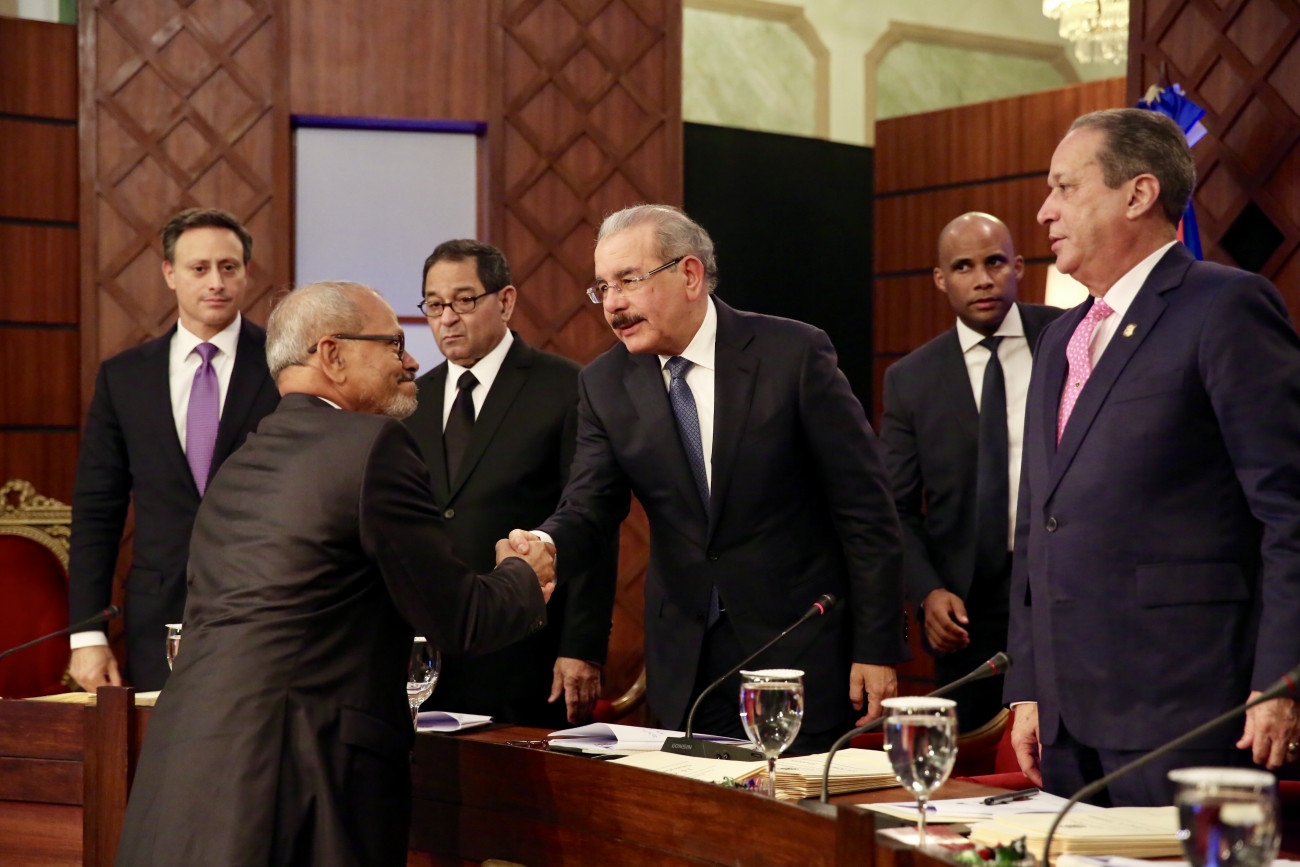 Consejo Nacional de la Magistratura (CNM), encabezado por el presidente Danilo Medina en calidad de presidente del CNM, durante las evaluaciones realizadas hoy en el Salón Verde del Palacio Nacional. Foto: Romelio Montero/Presidencia República Dominicana Enlace noticia: presidencia.gob.do/noticias/cnm-finaliza-entrevistas-78-c... Enlace video: livestream.com/PresidenciaRD/EntrevistasPublicasCNMMarzo2019