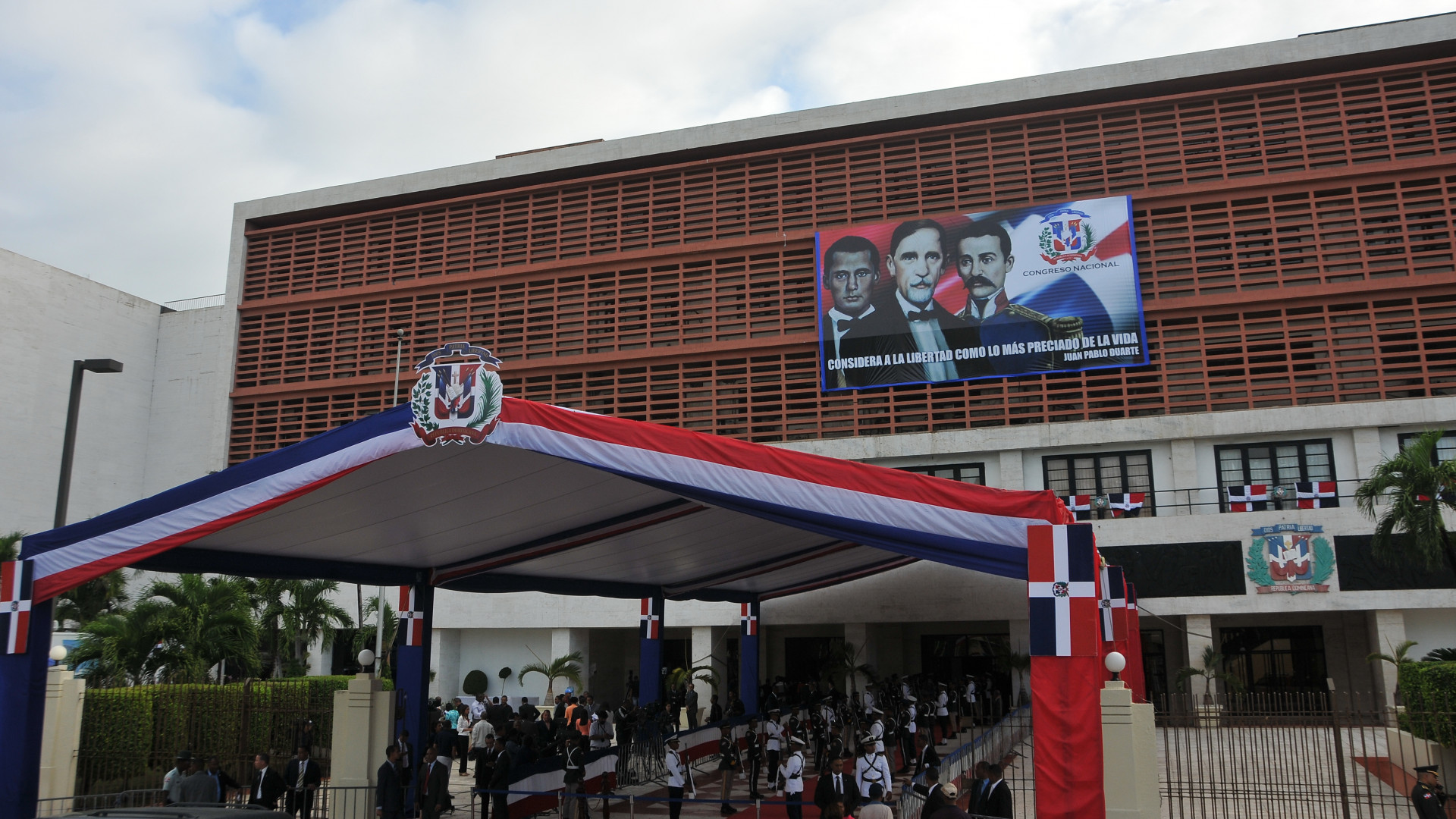 Explanada frontal del Palacio del Congreso Nacional, escenario para el recibimiento del presidente Danilo Medina, quien pronunció su discurso de rendición cuentas ante la Asamblea Nacional el 27 de febrero de 2014.