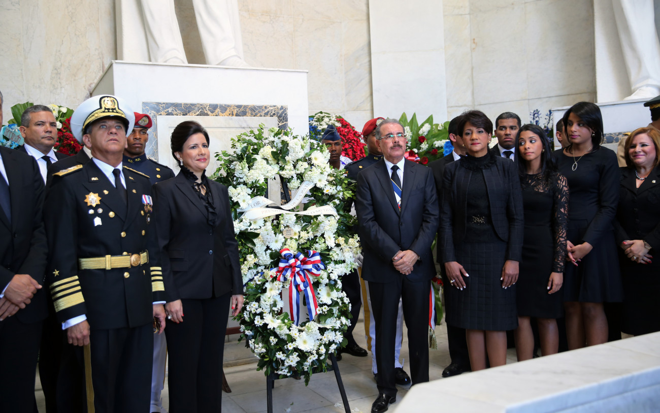 El presidente Danilo Medina, acompañado de la vicepresidenta Margarita Cedeño de Fernández; la primera dama Cándida Montilla de Medina, e hijas Sibelys,y Ana Paula; autoridades civiles y militares, mientras depositan una ofrenda floral ante el mausoleo de los Padres de la Patria: Juan Pablo Duarte, Matías Ramón Mella y Francisco del Rosario Sánchez, por el 170 aniversario de la Independencia Nacional. Foto: Alfredo Olaverría/Presidencia República Dominicana Nota de prensa: presidencia.gob.do/noticias/el-presidente-danilo-medina-r...