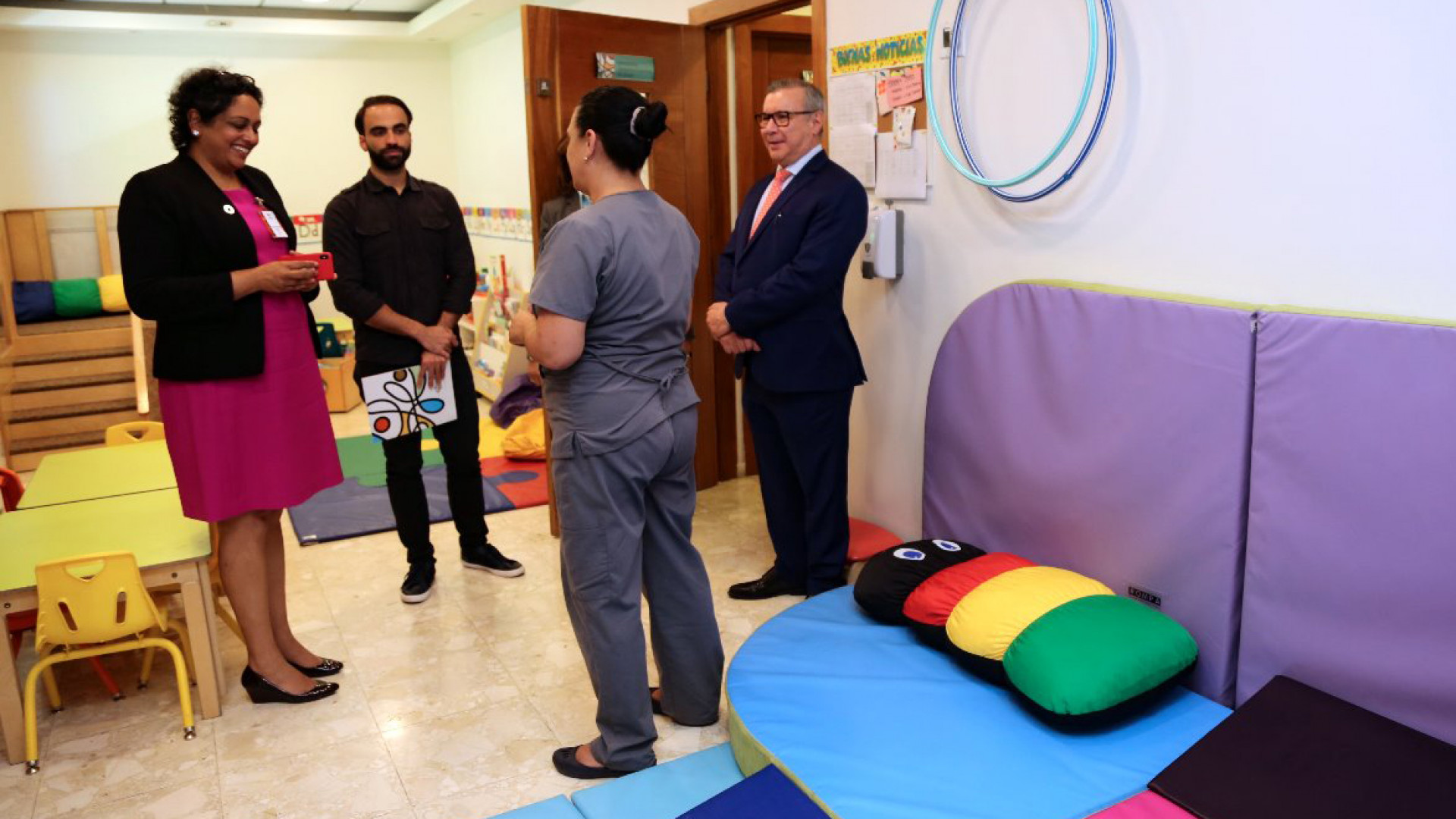 Praydnya Haldipur, experta del Children's Hospital Health System de Washington, durante su visita al CAID Santo Domingo Oeste, donde valoró las atenciones que se ofrecen a niños y niñas que reciben los diferentes servicios en ese centro.