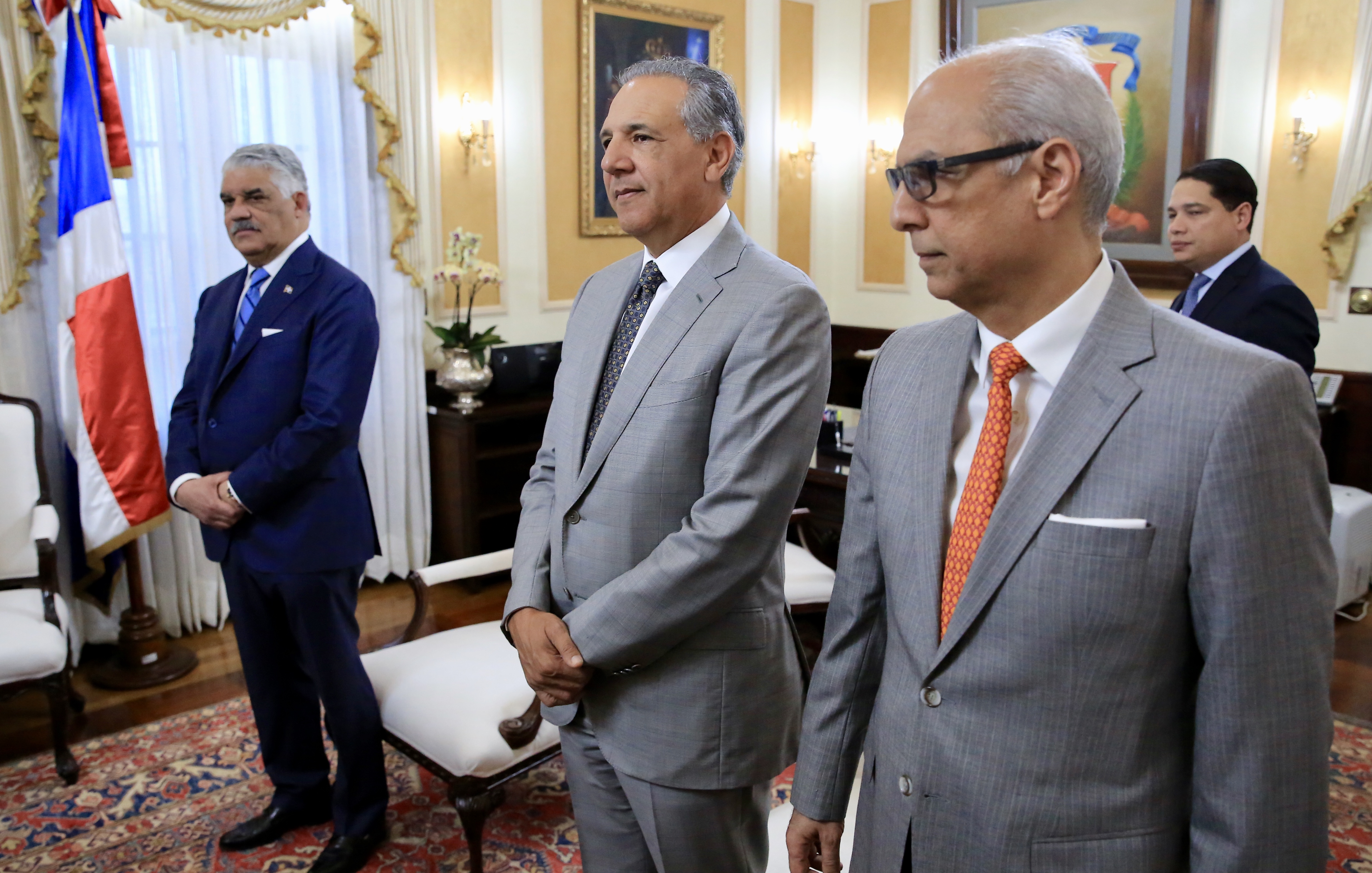 Miguel Vargas Maldonado, ministro de Relaciones Exteriores, José Ramón Peralta, ministro Administrativo de la Presidencia, y Flavio Darío Espinal, consultor jurídico del Poder Ejecutivo.