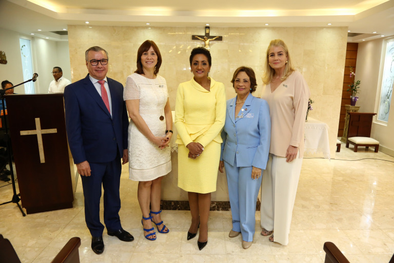 La primera dama Cándida Montilla de Medina en compañía del director del CAID, Moisés Taveras, y Damas voluntarias vinculadas a áreas de salud en el país.