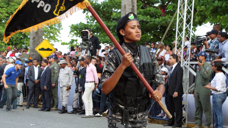Dirigente de Brigada femenina de Unidad Terrestre de la Armada Nacional, presente durante el desfile militar realizado en honor al presidente de la República, Danilo Medina Sánchez, por el Ministerio de Defensa y la Policía Nacional, con motivo del 170 aniversario de la Independencia Nacional