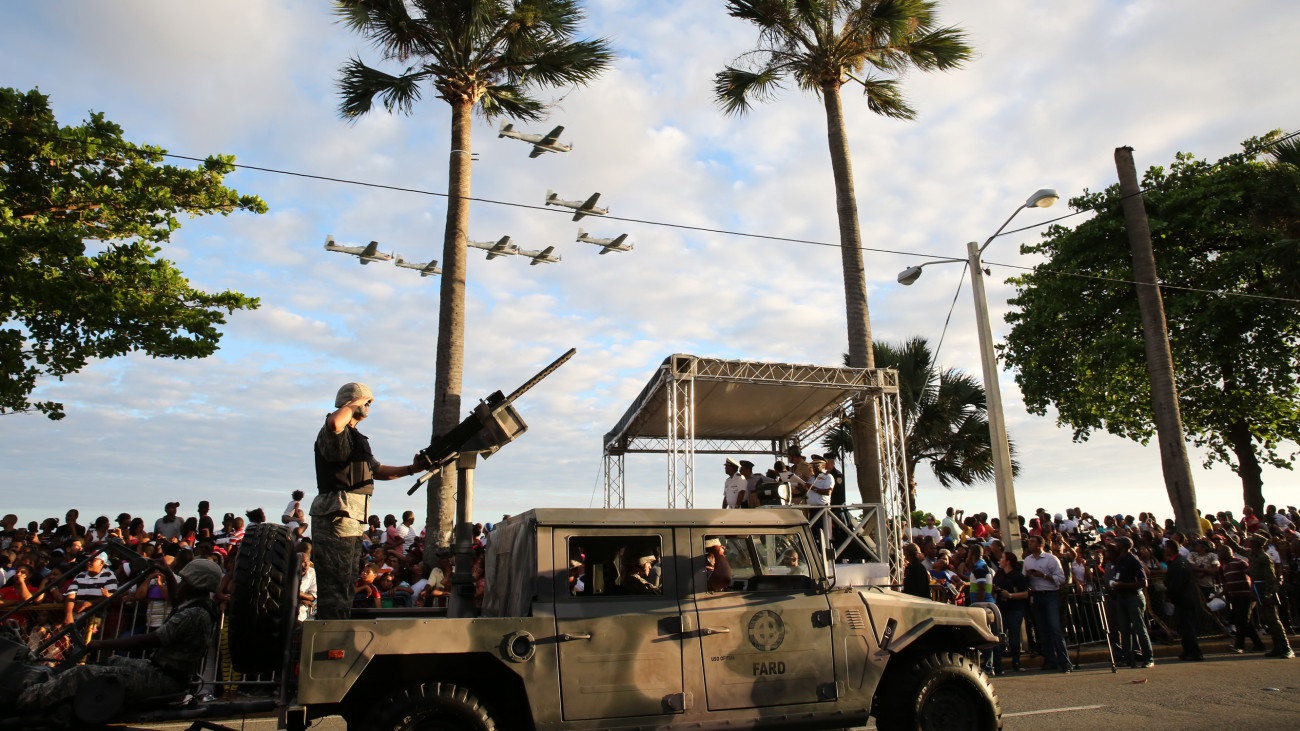 Integrantes de Unidades Terrestres de la Fuerzas Armadas Dominicanas, presentes durante el desfile militar realizado en honor al presidente de la República, Danilo Medina Sánchez, por el Ministerio de Defensa y la Policía Nacional, con motivo del 170 aniversario de la Independencia Nacional
