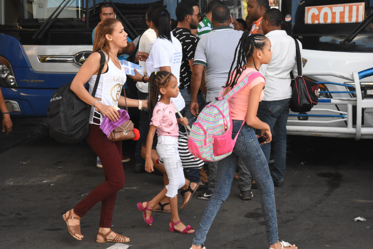 Ciudadanos abordan autobuses para dirigirse a diversos puntos del país y compartir en familia.