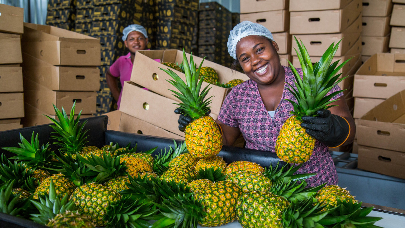 Caralinda Agroindustrial exporta 5 mil cajas de piña semanales desde Monte Plata hacia Europa, Israel y Rusia.
