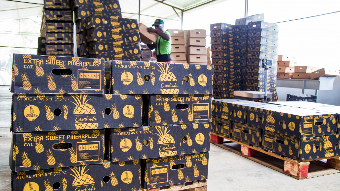 Caralinda Agroindustrial exporta 5 mil cajas de piña semanales desde Monte Plata hacia Europa, Israel y Rusia.