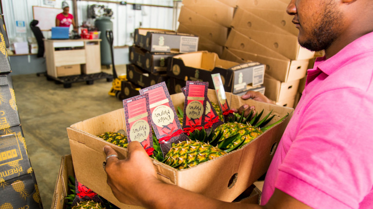 Caralinda Agroindustrial exporta 5 mil cajas de piña semanales desde Monte Plata hacia Europa, Israel y Rusia.