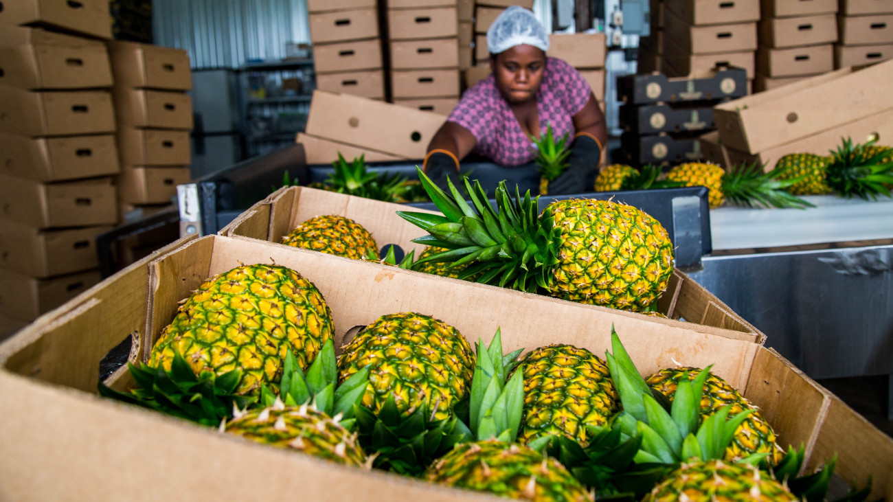Caralinda Agroindustrial exporta 5 mil cajas de piña semanales desde Monte Plata hacia Europa, Israel y Rusia.