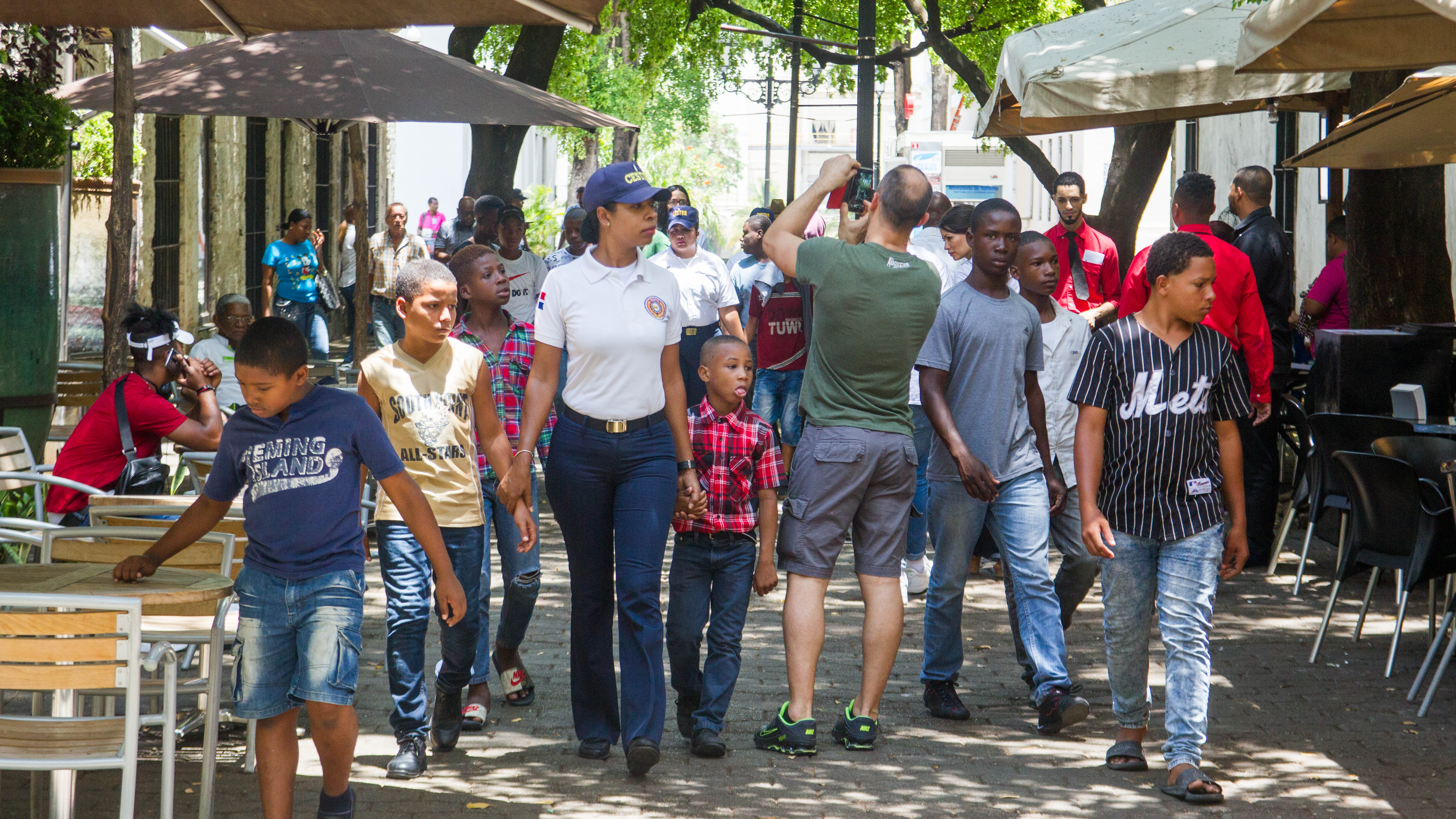 Participantes del programa de rescate de niños, niñas y adolescentes en condiciones vulnerables, que realiza el Cuerpo Especializado de Seguridad Turística (CESTUR), en la Ciudad Colonial. Foto: Presidencia República Dominicana Enlace noticia: presidencia.gob.do/noticias/mas-de-1700-ninos-y-ninas-han... Video YouTube: www.youtube.com/watch?v=m1NnsDpxe8s