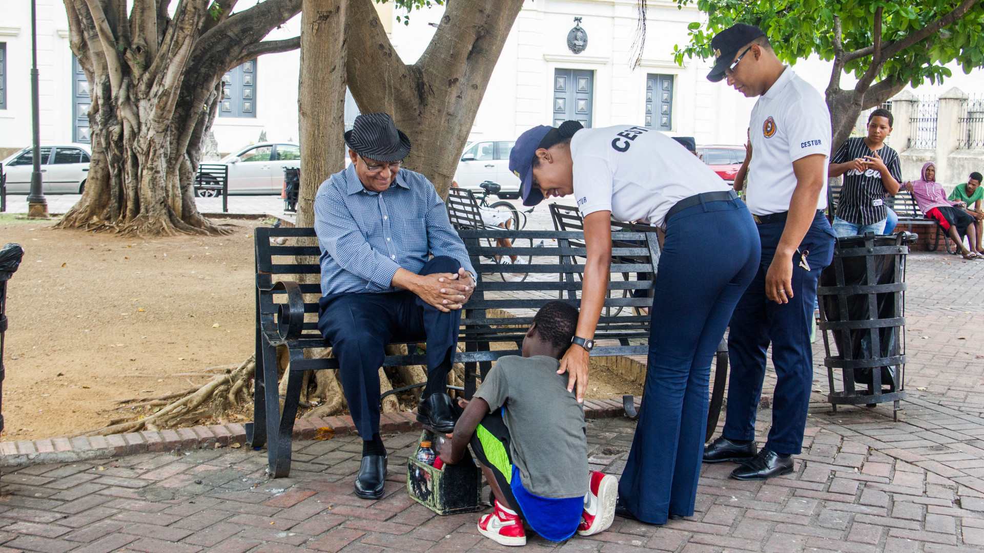 Participantes del programa de rescate de niños, niñas y adolescentes en condiciones vulnerables, que realiza el Cuerpo Especializado de Seguridad Turística (CESTUR), en la Ciudad Colonial.
