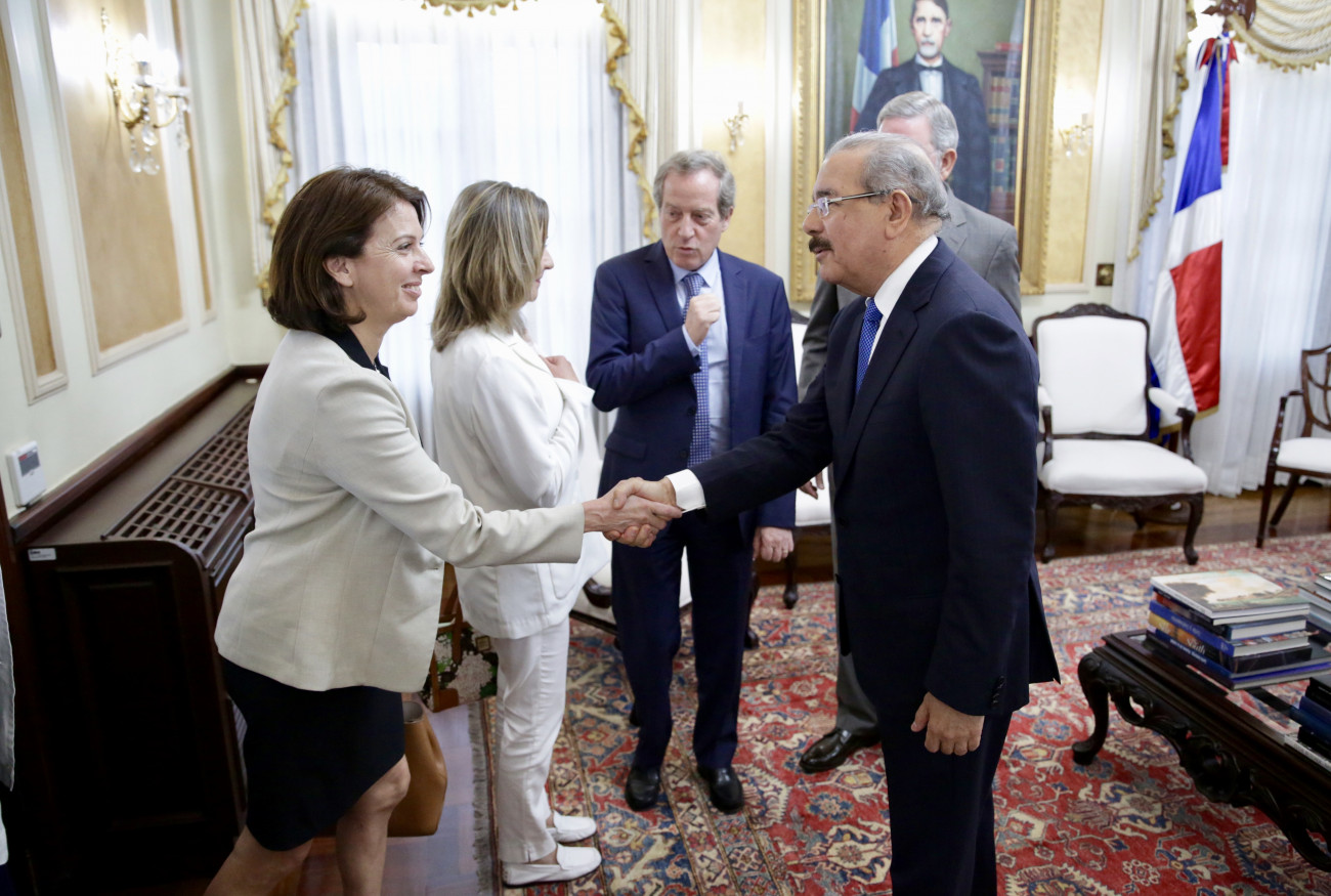 El presidente Danilo Medina con delegación del Grupo de Amistad Francia-Caribe, del Senado del país europeo, encabezada por su presidenta Hélène Conway-Mouret, durante visita de cortesía en su despacho presidencial del Palacio Nacional.