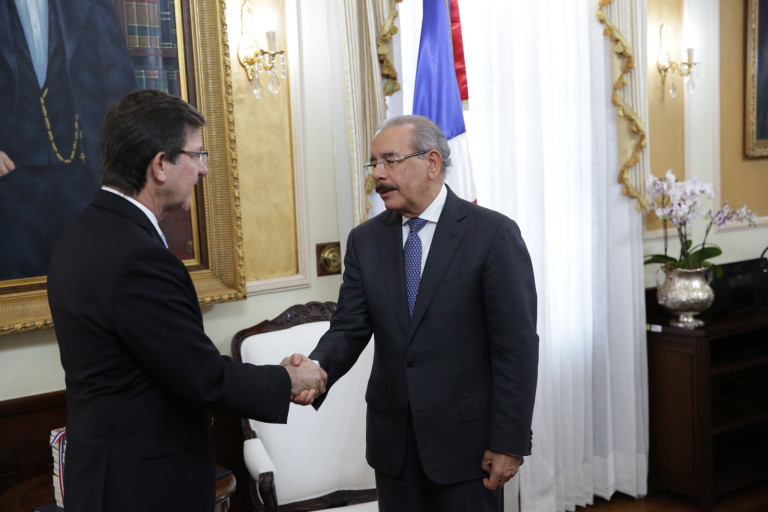 . El presidente Danilo Medina con Luis Rivera Marín, secretario de Estado de Puerto Rico, en visita de cortesía en el despacho presidencial del Palacio Nacional.