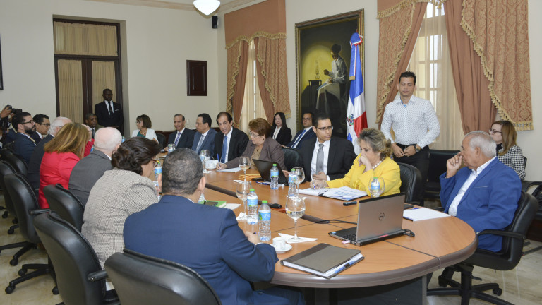 Reunión de trabajo encabezada por el ministro de la Presidencia, Gustavo Montalvo, con funcionarios de la Comisión Nacional para el Marco Nacional de Cualificaciones (MNC), realizada hoy en el salón Los Trinitarios del Palacio Nacional.