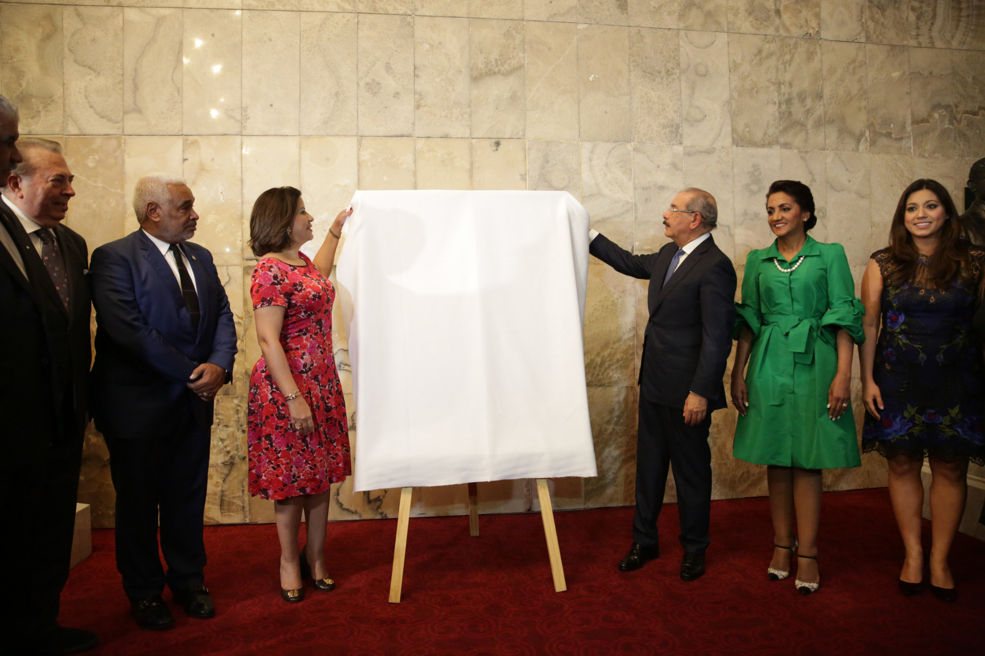 El presidente de la República, Danilo Medina y la vicepresidenta Margarita Cedeño, previo a la ceremonia de apertura, develizaron un retrato del destacado escritor, concitando la emoción de los presentes.