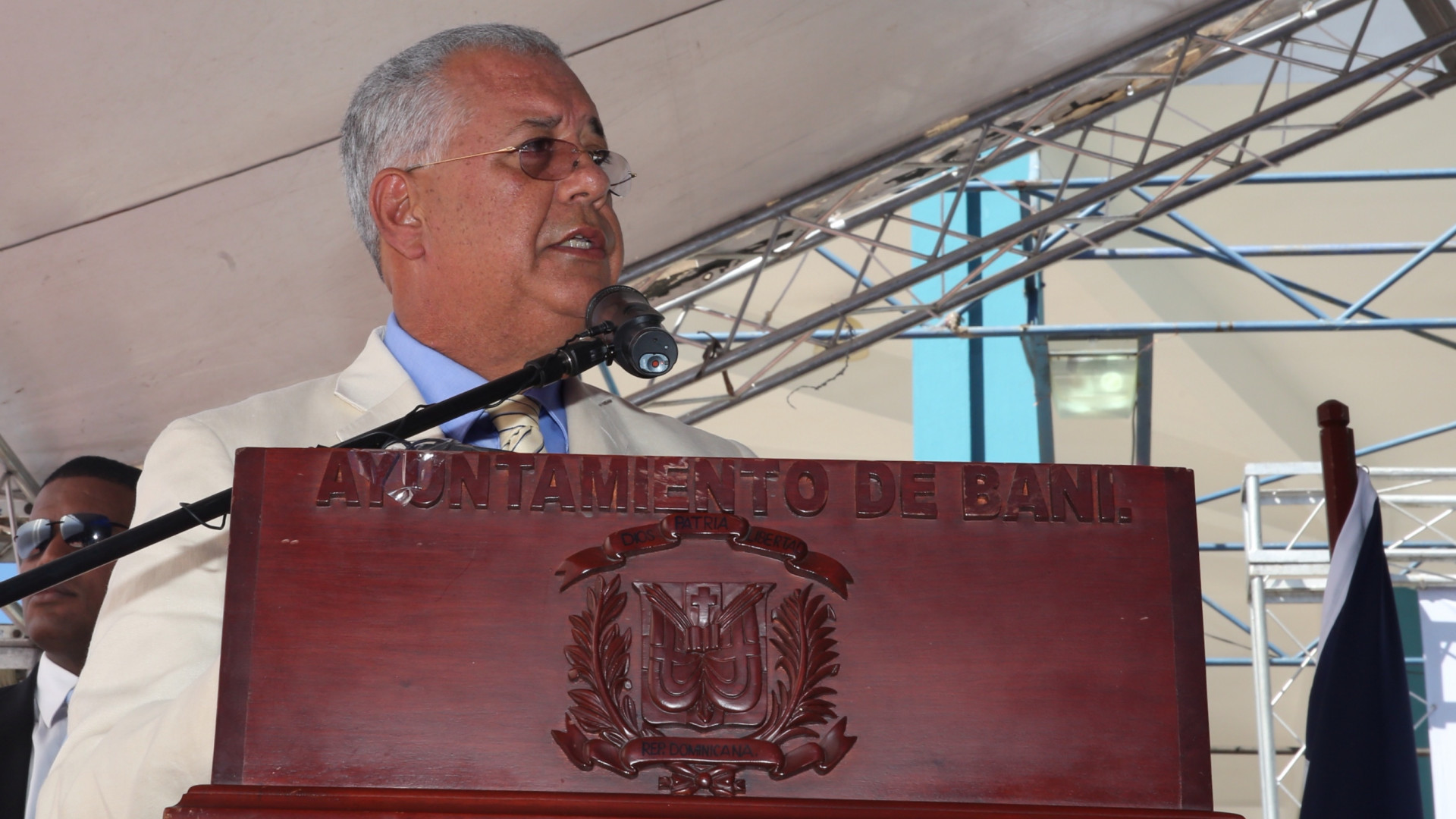El alcalde municipal de Baní, Nelson Camilo Landestoy, durante su participación en el acto de apertura.