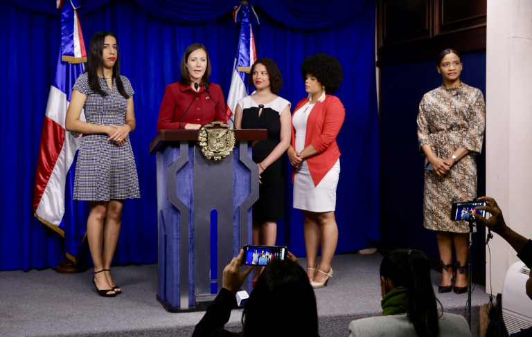 Rueda de prensa encabezada por la embajadora de Canadá en la República Dominicana, Shauna Hemingway, en el Salón Orlando Martínez del Palacio Nacional.