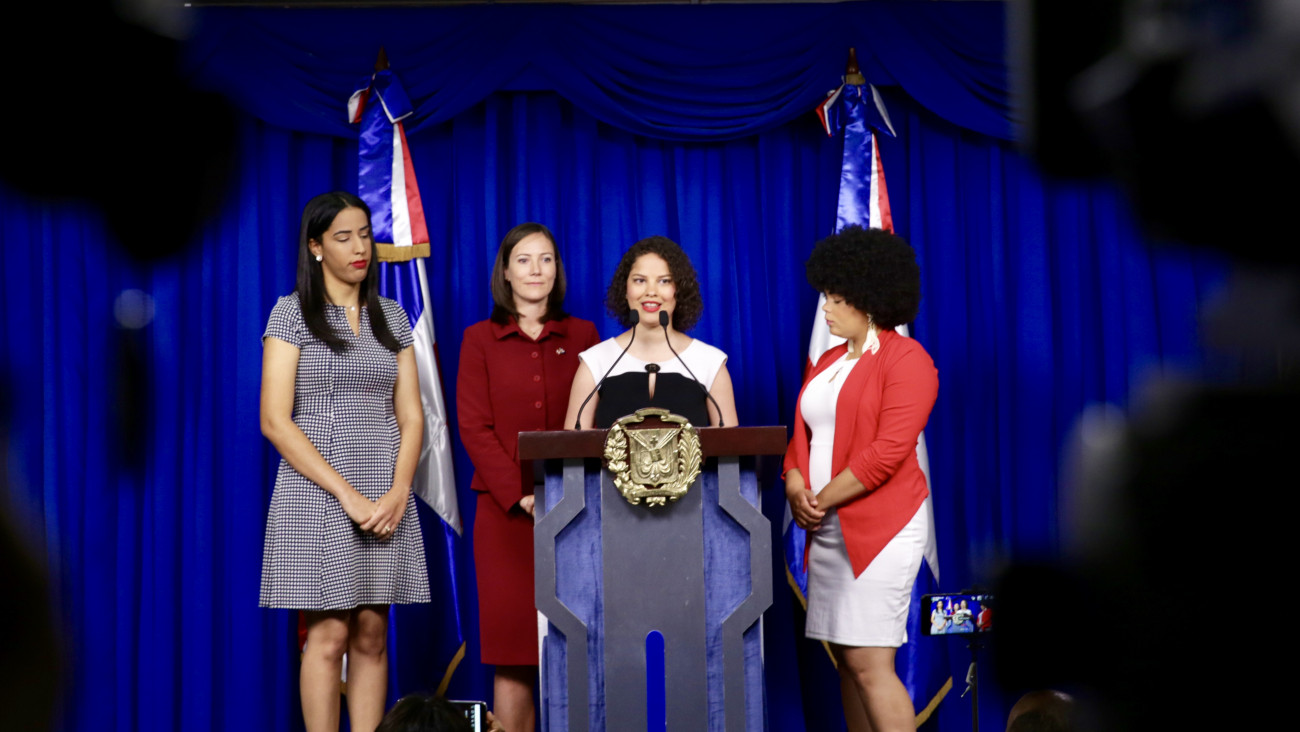 Rueda de prensa encabezada por la embajadora de Canadá en la República Dominicana, Shauna Hemingway, en el Salón Orlando Martínez del Palacio Nacional.