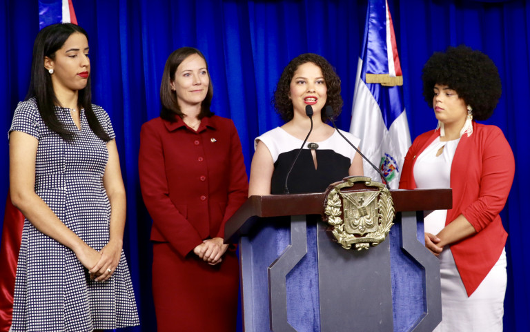 Rueda de prensa encabezada por la embajadora de Canadá en la República Dominicana, Shauna Hemingway, en el Salón Orlando Martínez del Palacio Nacional.