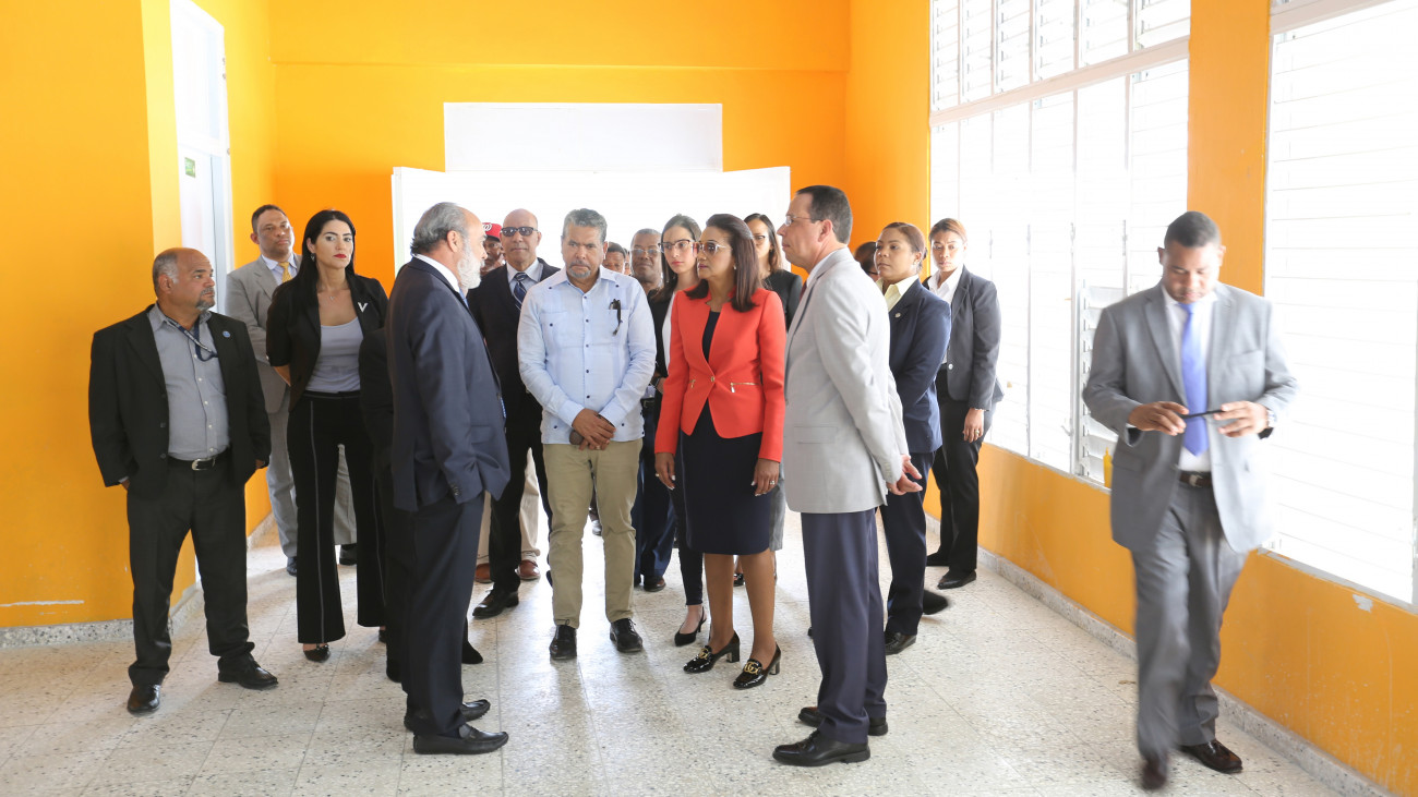Durante la visita de supervisión, Cándida Montilla de Medina estuvo acompañada por el ministro de Educación, Antonio Peña Mirabal y el director de la Oficina de Ingenieros Supervisores de Obras del Estado (OISOE), Francisco Pagán.