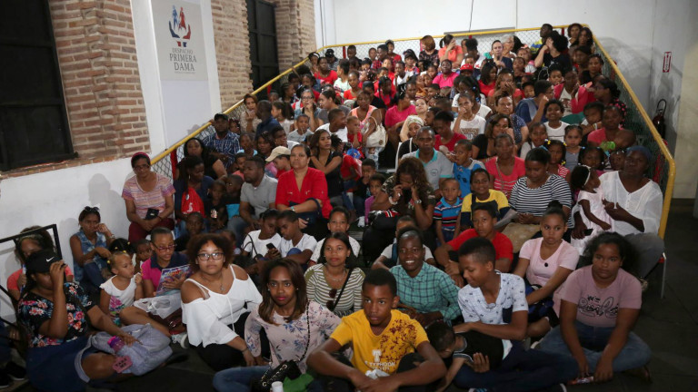 Visitantes del estand del Despacho de la Primera Dama, durante la Feria Internacional del Libro Santo Domingo 2019,