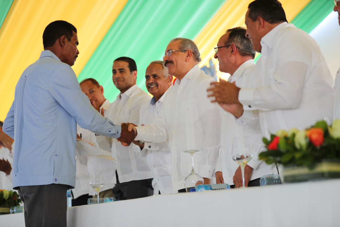 Acto encabezado por el presidente Danilo Medina por la entrega de títulos definitivos de propiedad de a parceleros y residentes en Las Cabuyas y La Culata, de La Vega y Constanza, respectivamente.