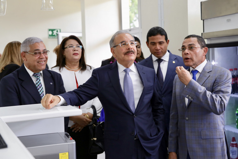 El presidente Danilo Medina durante el recorrido por las nuevas instalaciones junto a los integrantes de la mesa principal.