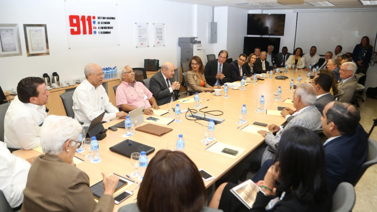 Reunión encabezada por el ministro de la Presidencia, Gustavo Montalvo con rectores de varias universidades, realizada en la sede del Sistema 9-1-1.