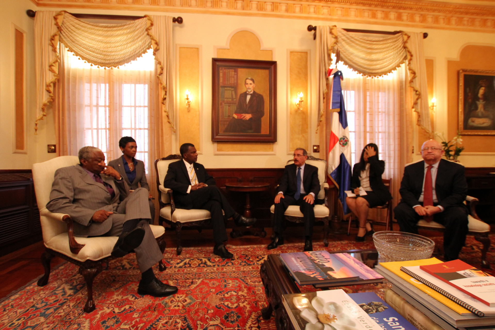 El presidente Danilo Medina recibió en audiencia privada en su Despacho del Palacio Presidencial al Canciller de las islas Bahamas, Frederick Audley Mitchell, quien se encuentra en el país en visita oficial.