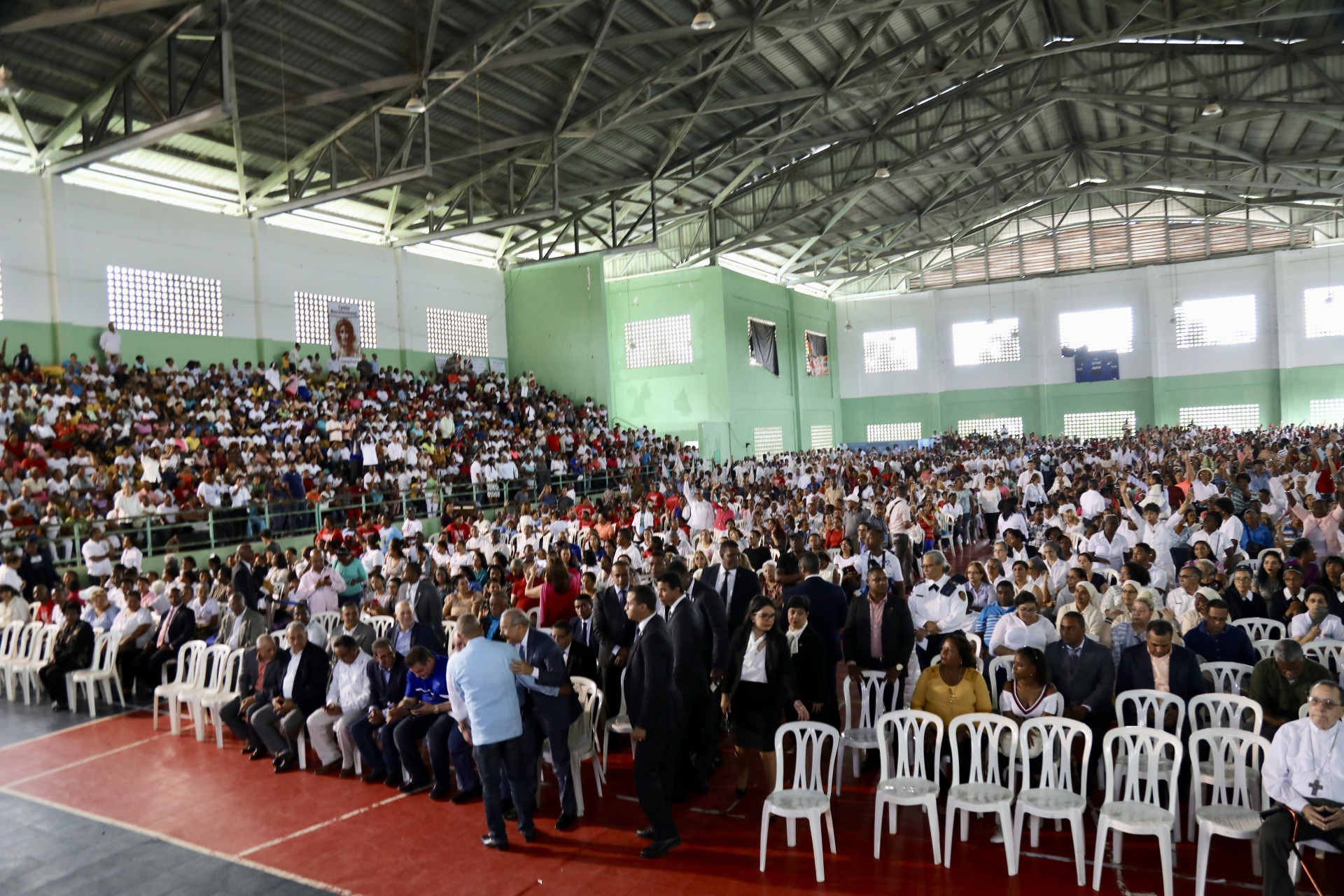 Celebración de eucaristía por creación Vicaría Episcopal Territorial Monte Plata, encabezada por Mons. Francisco Ozoria Acosta, que contó con la asistencia del presidente Danilo Medina, en el Polideportivo de Bayaguana, Monte Plata.