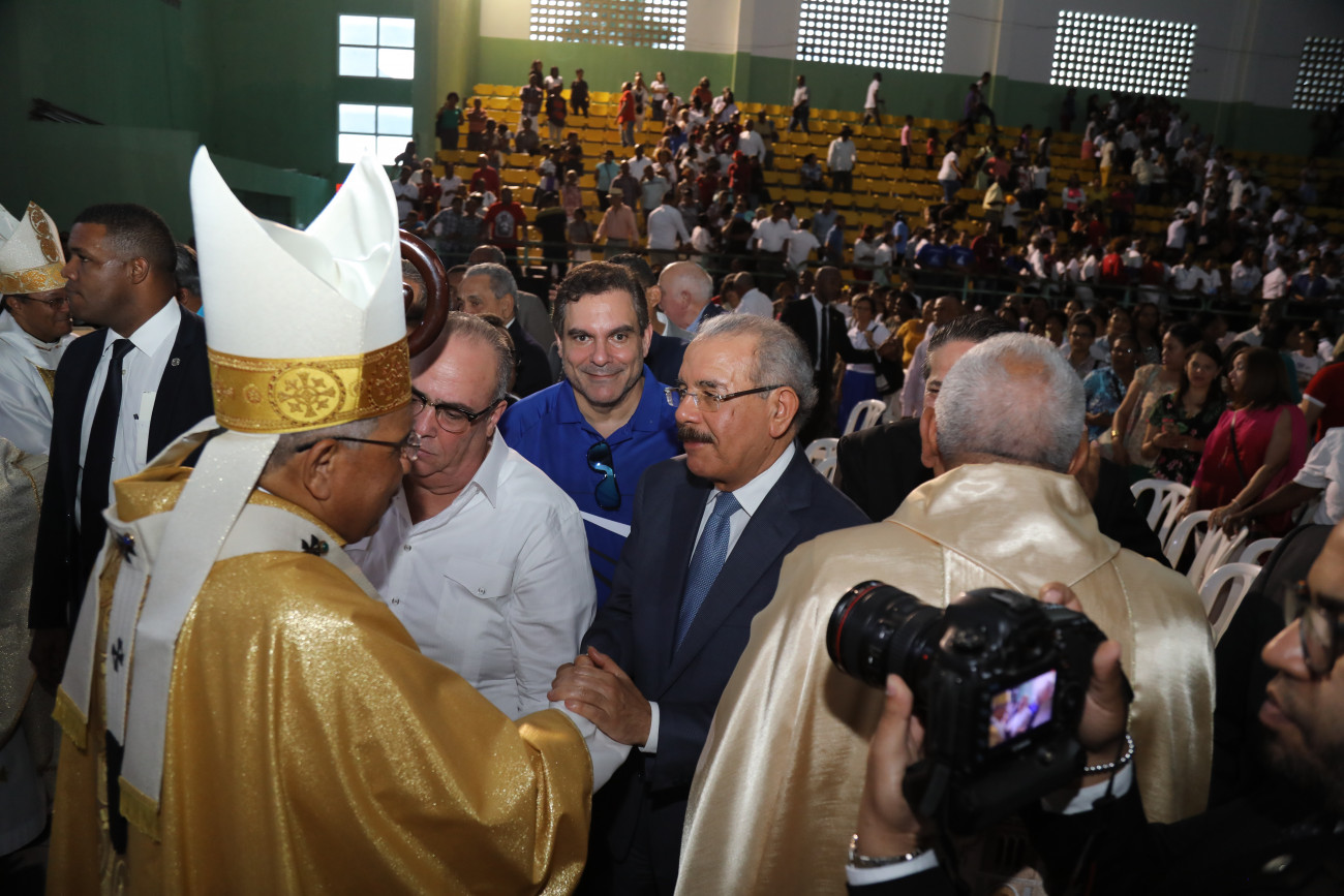 Celebración de eucaristía por creación Vicaría Episcopal Territorial Monte Plata, encabezada por Mons. Francisco Ozoria Acosta, que contó con la asistencia del presidente Danilo Medina, en el Polideportivo de Bayaguana, Monte Plata.