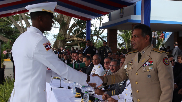 Participacion del jefe de Estado Mayor del Ejército, mayor general Rubén Darío Paulino Sem, al hacer entrega de reconocimiento uno de los nuevos oficiales.