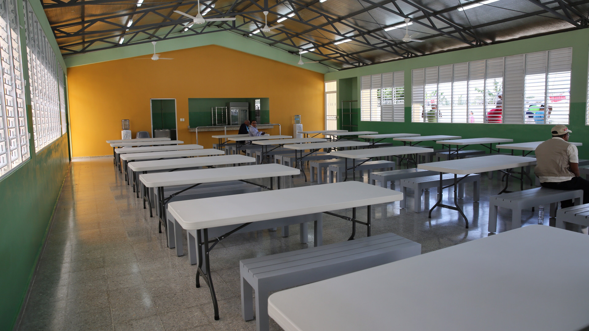 Área del comedor de unas de las cinco escuelas pertenecientes a la Jornada de Tanda Extendida que fueron inauguradas hoy en Monseñor Nouel por el presidente Danilo Medina.
