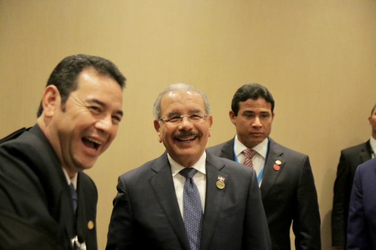 El presidente Danilo Medina comparte con su homólogo de Guatemala, Jimmy Morales.