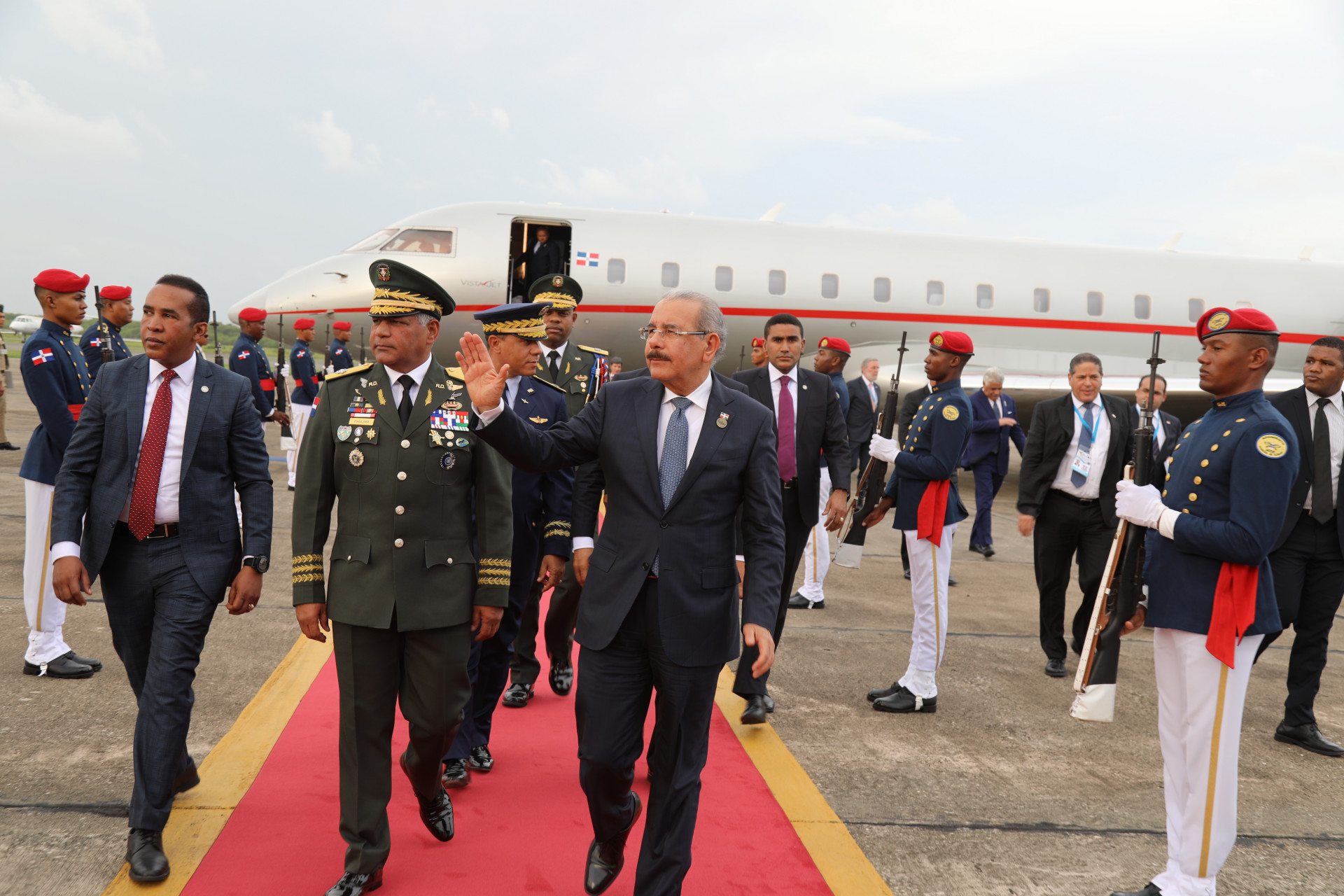 El presidente Danilo Medina regresó al país, a las 5:53 de la tarde, por la Base Aérea de San Isidro, procedente de Guatemala.