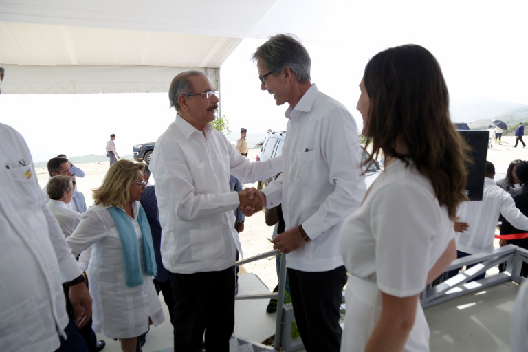 Acto de inicio de las operaciones de Parques Eólicos del Caribe (PECASA), en Montecristi, encabezado por el presidente Danilo Medina y ejecutivos de la empresa Akuo Energy de energías renovables.