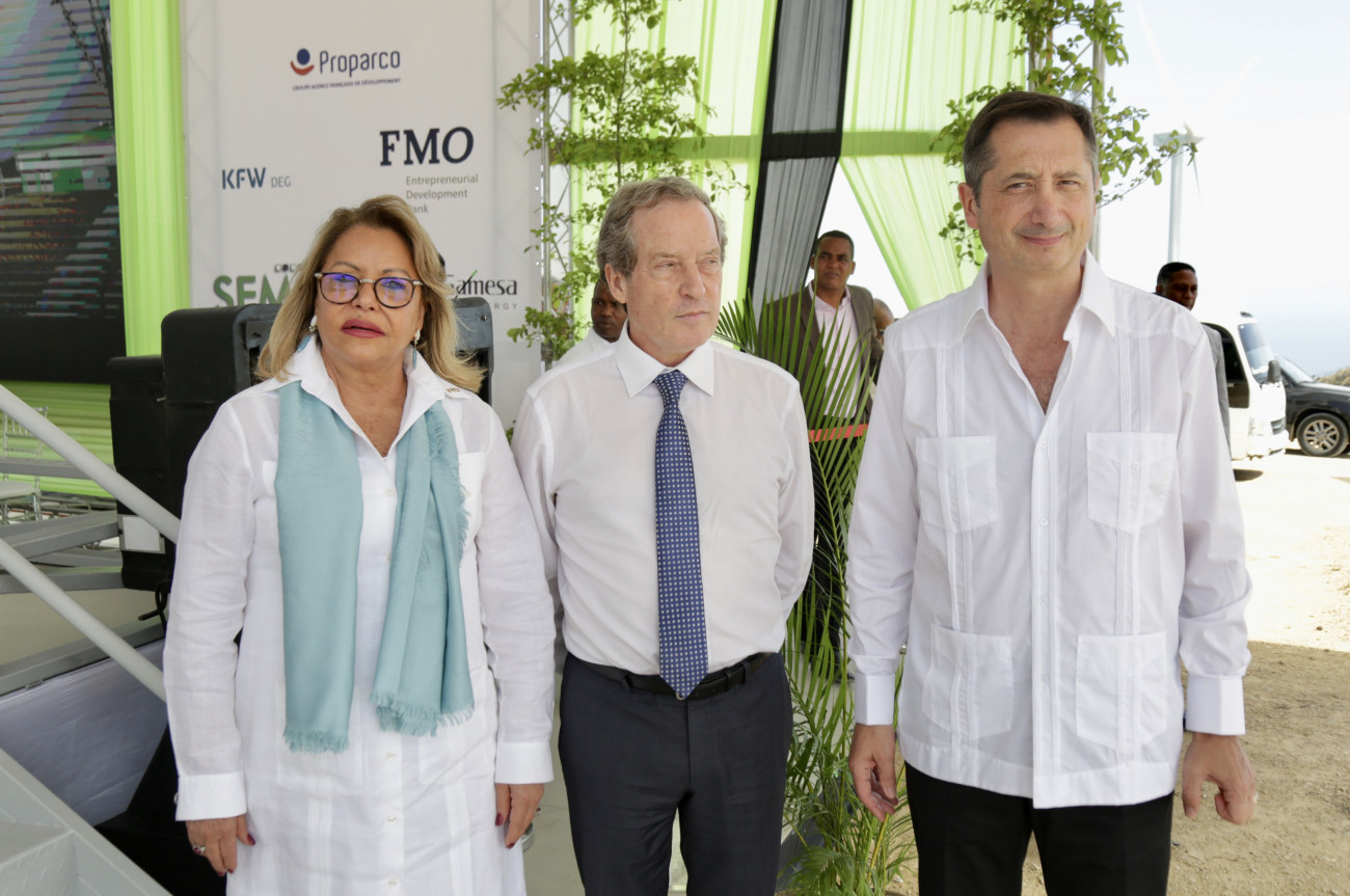 Acto de inicio de las operaciones de Parques Eólicos del Caribe (PECASA), en Montecristi, encabezado por el presidente Danilo Medina y ejecutivos de la empresa Akuo Energy de energías renovables.